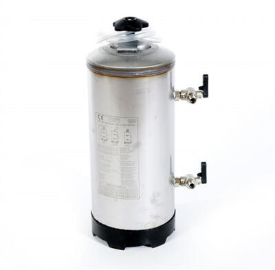 12 literes manuális vízlágyító INOX fedéllel, 3/4 " csapokkal, gyantával feltöltve